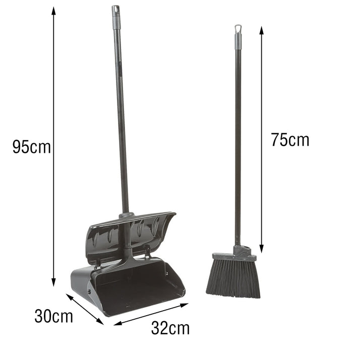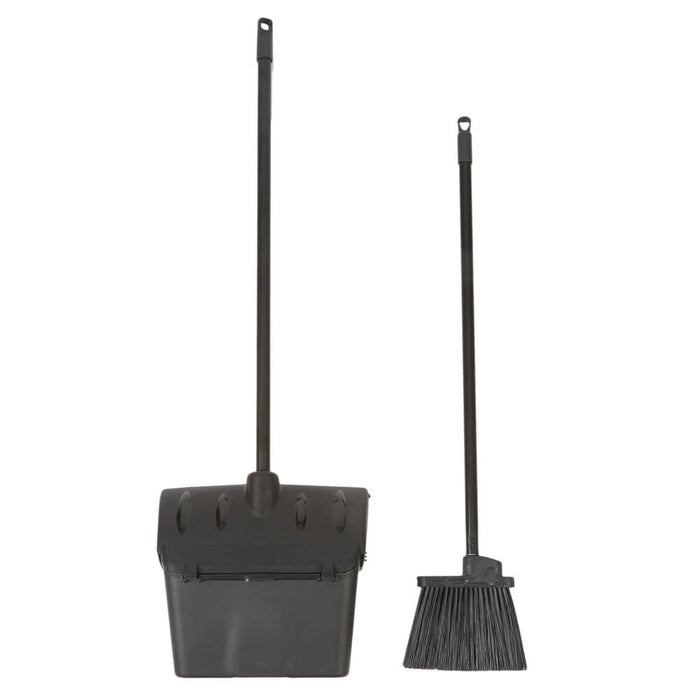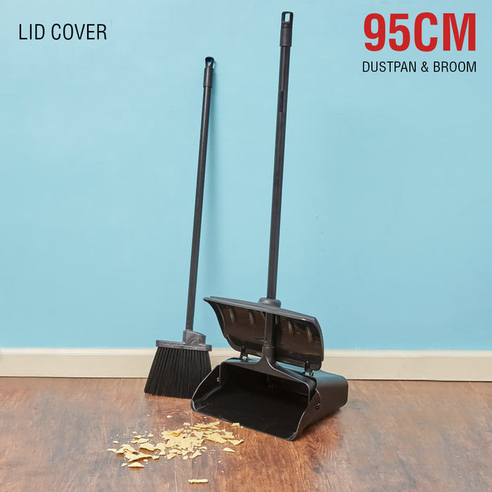 Dustpan and Brush Broom Set Dust Pan Long Black Sweep Lobby Garden Lid Cover 95