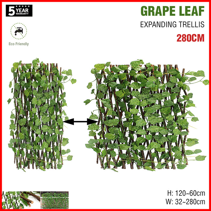 Premium, UV engineered Grape Leaf Extendable Trellis 2.8m by 1.2m – Perfect for fences, walls, patios, balconies and more.