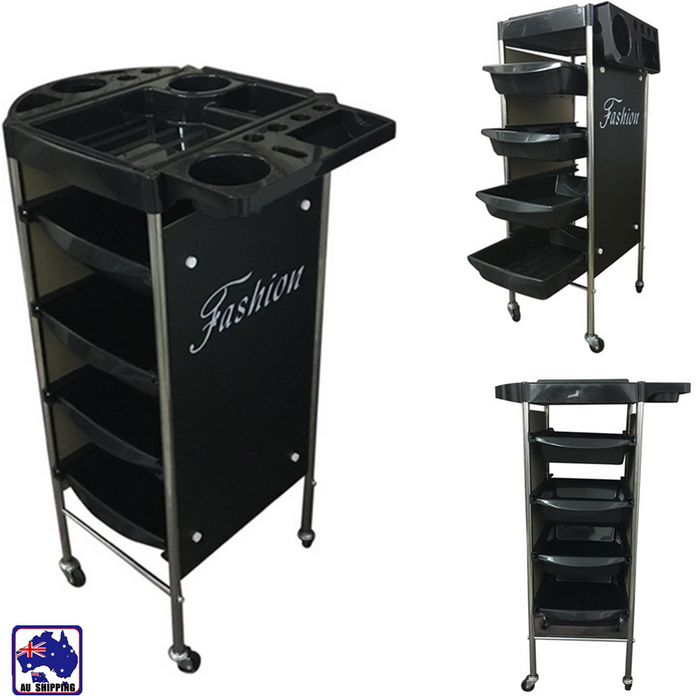 Hairdressing Trolley Salon Beauty Spa Wheel Dresser Drawer Storage Black 4 Tier