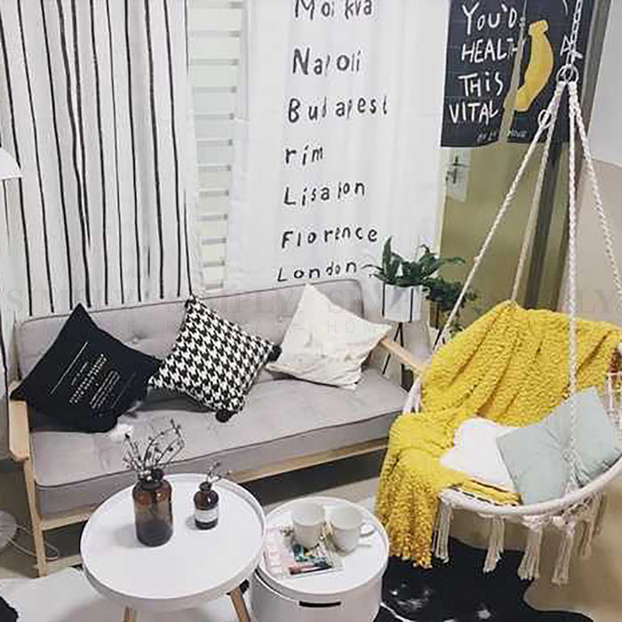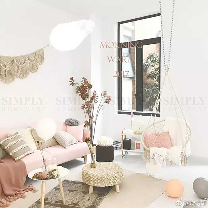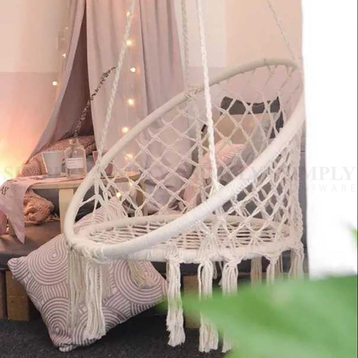 Designed to cup you in the best way possible, our Hammock Chair is extremely relaxing to sit on with ample support for your back and arms. Built of a sturdy structure wrapped in a mix of polyester and cotton fabric, and adorned with lovely handcrafted tassels, our Hammock Chair has all the right vibes of days spent enjoying your favorite past times suspended in mid-air with nary a care in the world.