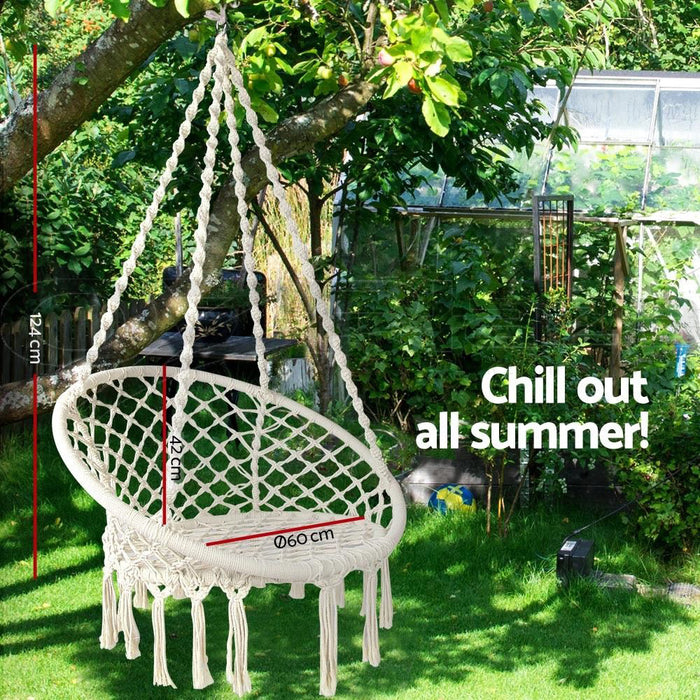 Hammock Swing Chair Straps Hanging Camping Egg Outdoor Indoor Bed Knitted Cream