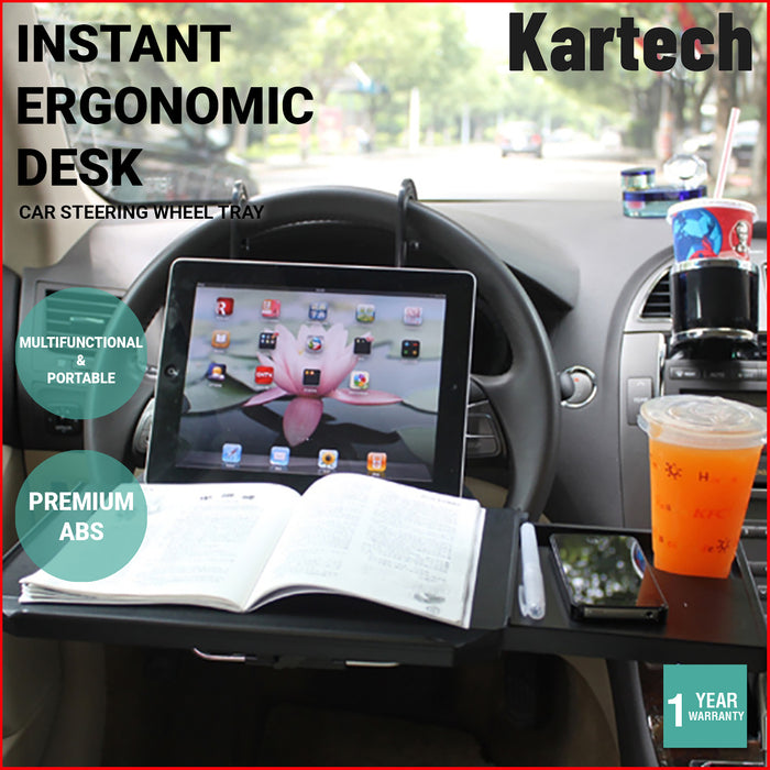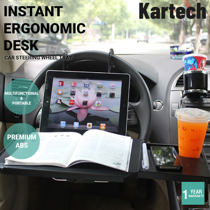 Kartech Car Steering Wheel Tray Laptop Mount Table Eating Food Back Seat Stand