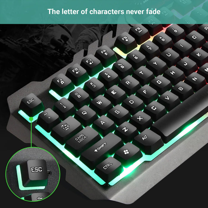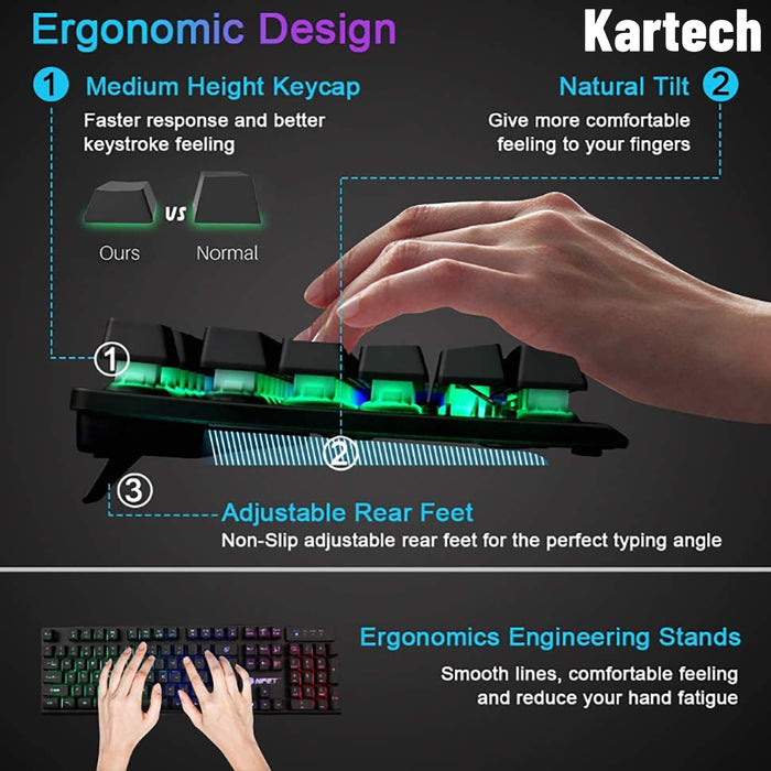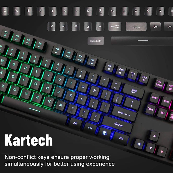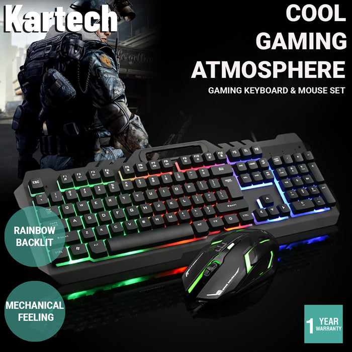 Kartech Gaming Keyboard & Mouse Set Wired Mechanical Feeling Rainbow LED Backlit