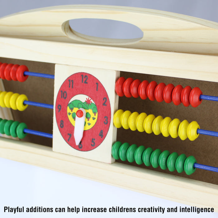 The easel also boasts unique additions, such as the colourful clock and abacus, and features an easy-to-fold design that makes it easy to store.