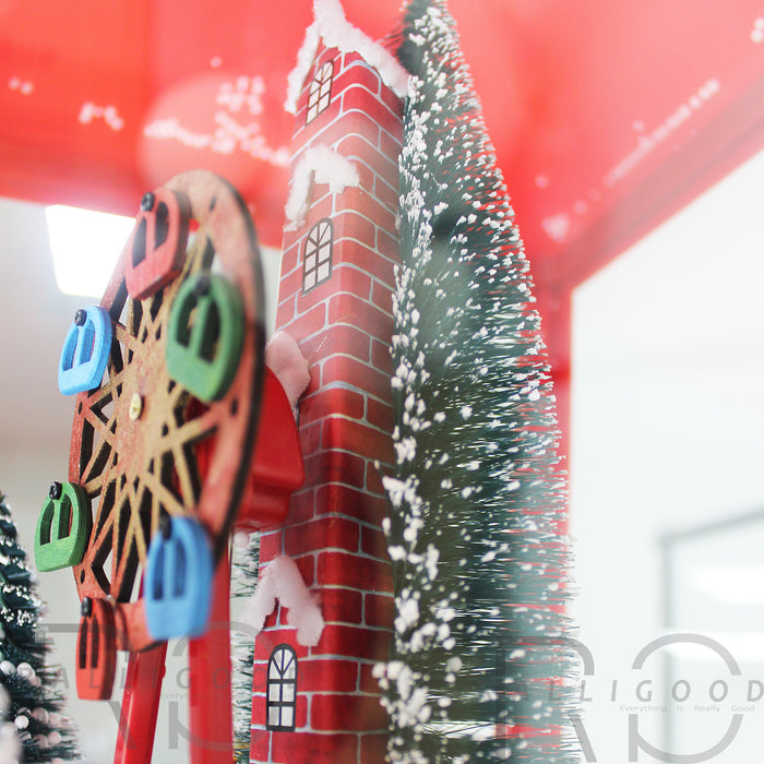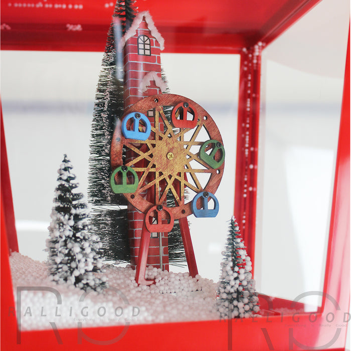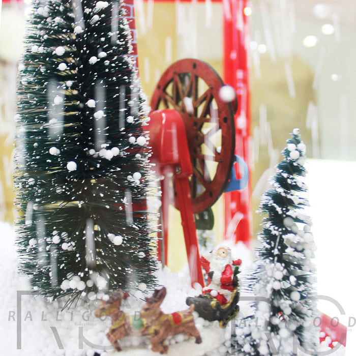 When plugged in, LEDs will light up the little diorama inside the cabin and blow snow much like a snow globe. If the music is not to your tastes, the street lamps also comes with a button to turn off the music, leaving only the lights and the blowing snow.