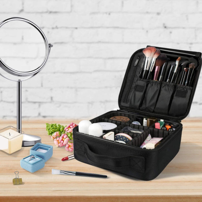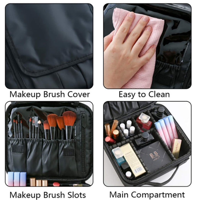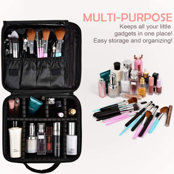 Lebeau Travel Makeup Train Case Cosmetic Train Organizer Portable Artist Storage Bag Adjustable Dividers Cosmetics Brushes Toiletry