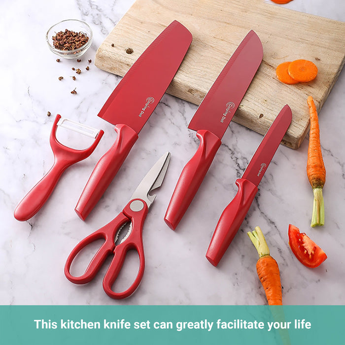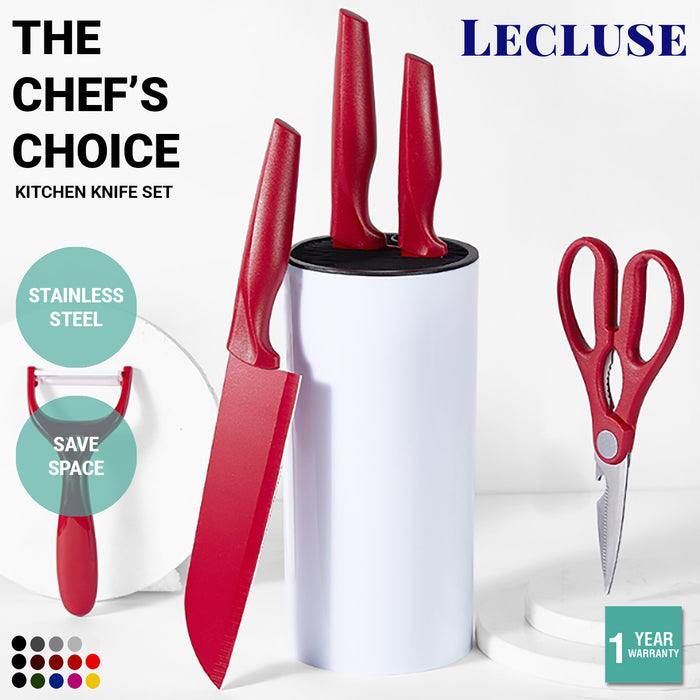 Lecluse Kitchen Knife Set Chef 5Pcs Block Cooking Cutting Peeler Scissors