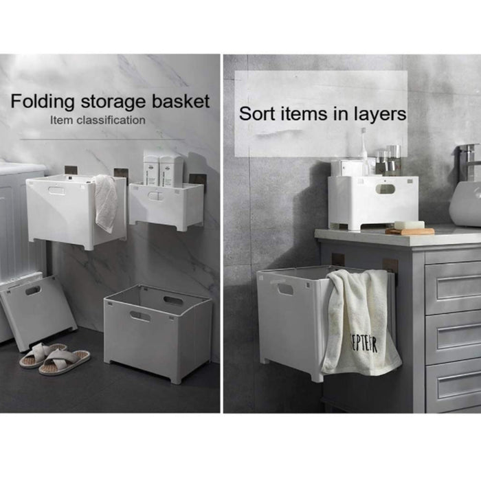 Lecluse Storage Basket Laundry Basket Foldable Punch-Free Wall Mounted Dirty Clothes Storage Clothes Toy Organizer