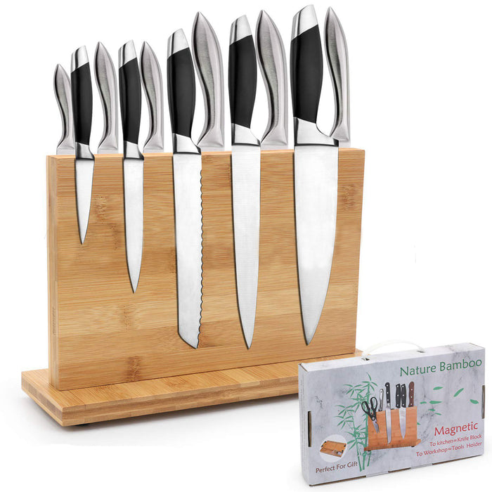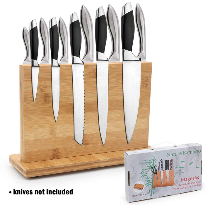 - ✔ DOUBLE-SIDED STORAGE & BLADE PROTECTING. This magnet knives holder can hold up 10 knives at least( depends on the size of the knives) in double side. The smooth surface of this block is perfect for protecting blade of knives and easy cleaning