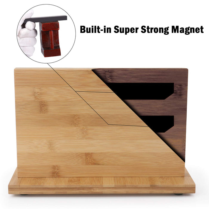 - ✔ ANTI-SLIP FEET: Our bamboo knife holder with anti-slip felt feet on the bottom, is safer to use on slippery counter tops than other knife blocks . Never be afraid any skidding, sliding, slipping, or wobbling around