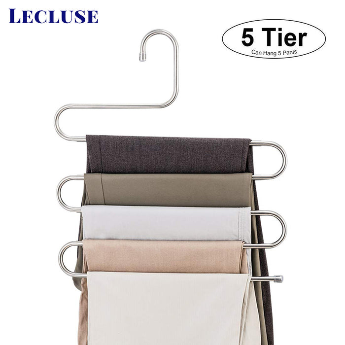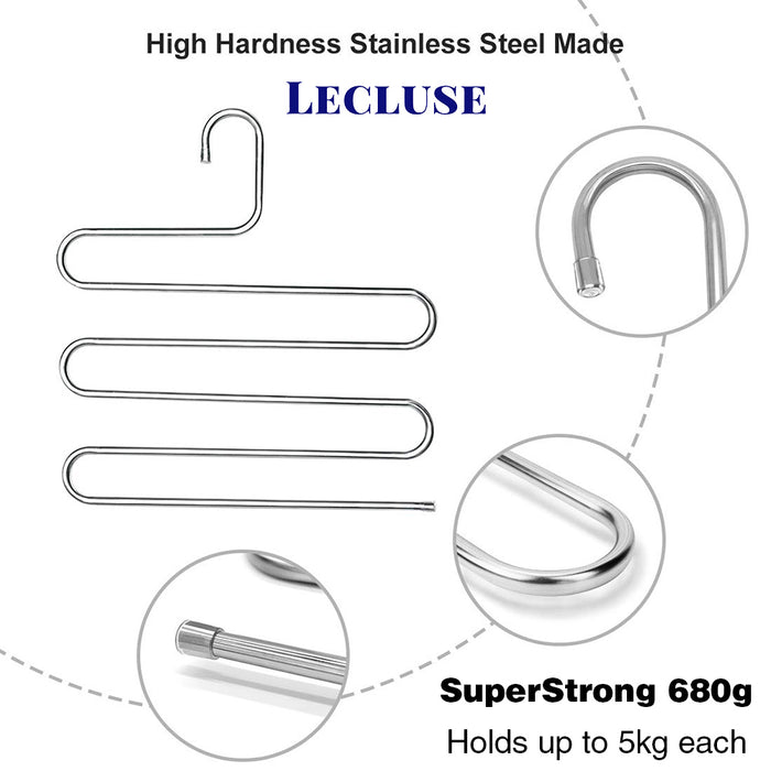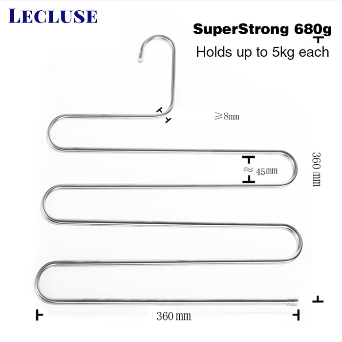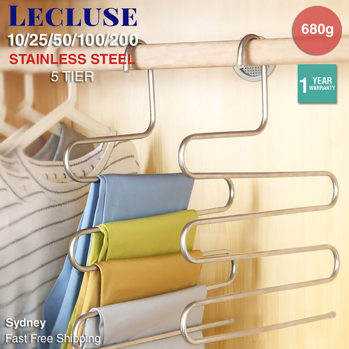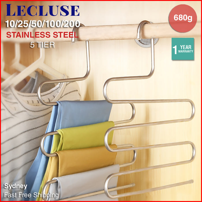 Lecluse Stainless Steel Trouser Hangers Pants Tie Clothes Coat Space Saving Bulk