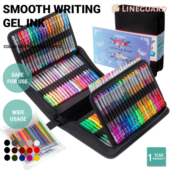 Lineguard 100 Color Artist Gel Pen Set More Ink Largest Non-Toxic Art Neon Pen f