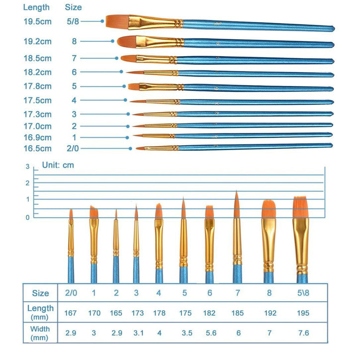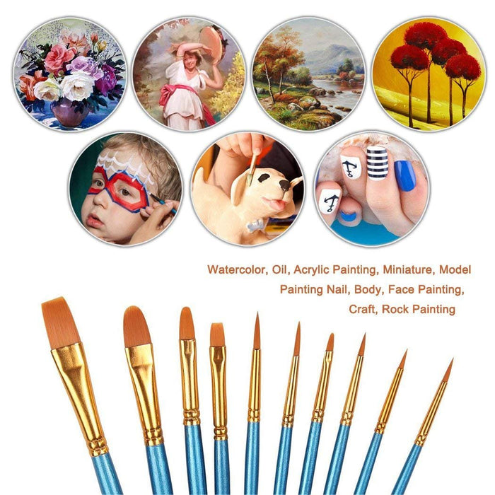 - All-purposed Brushes Sets: Professional paint brushes can cover all your needs. The multi-purposed brushes are ideal for Watercolor, Oil, Gouache, Acrylic Painting, Body, Nail, Face Painting, Miniature, Model, Ceramic, Craft Art Painting, etc.