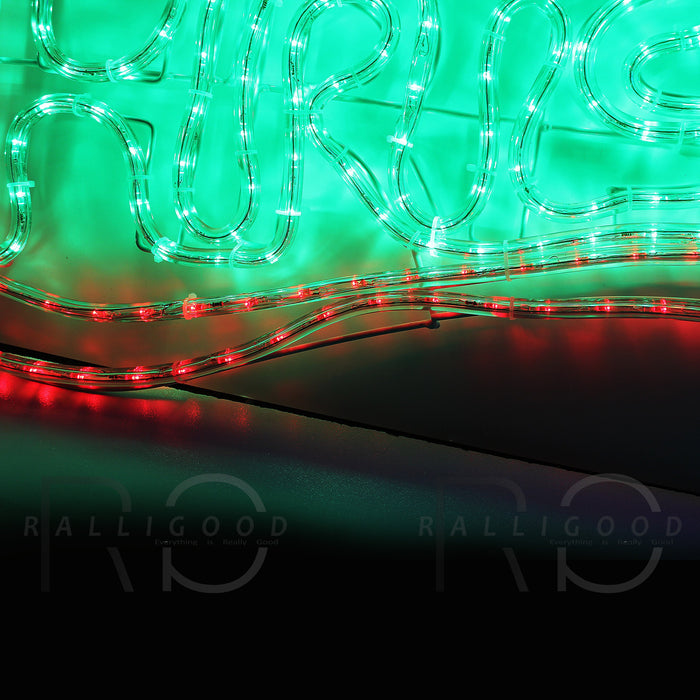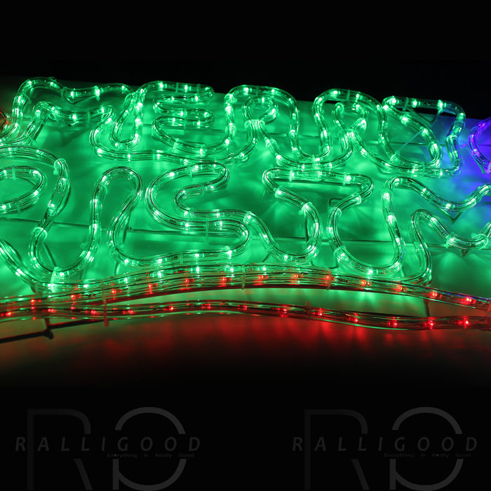 With the classical Christmas colours lighting up the sign, green, red and blue, we can all share in the festivities!