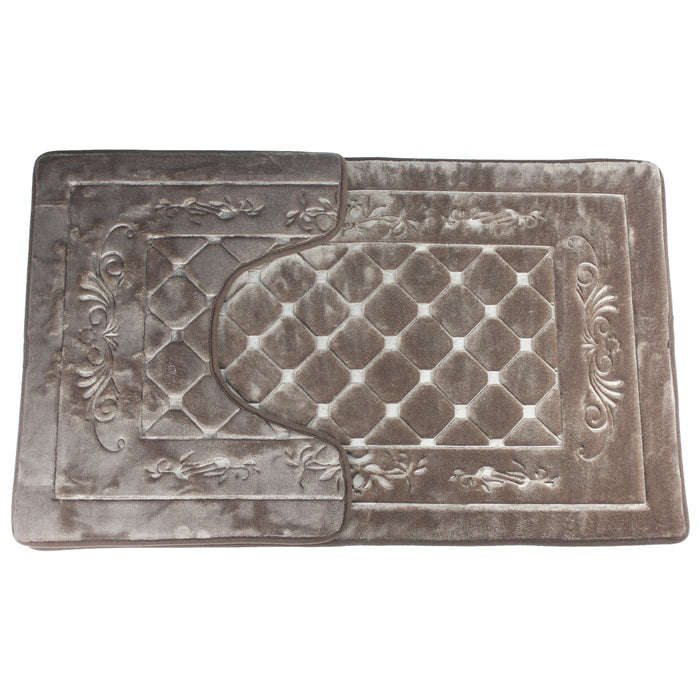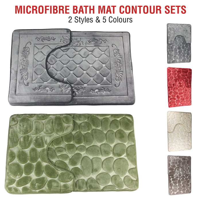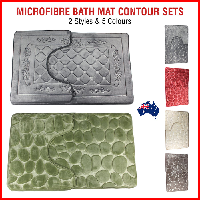 Microfibre Bath Mat Set Non Slip Rug Bathmat Toilet Shower Bathroom Anti Contour