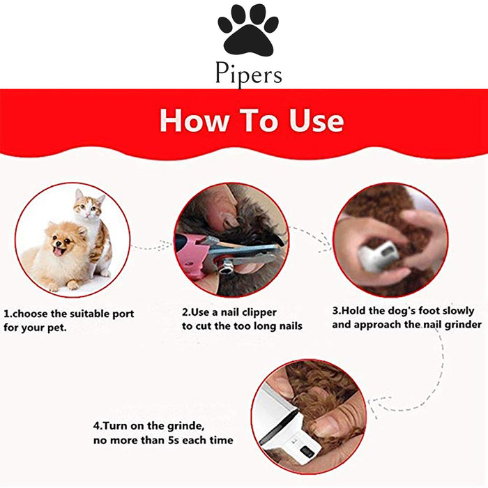 Pipers Pet Nail Grinder Dog Cat Claw Toe Grooming Trimmer Clipper Electric Tool
