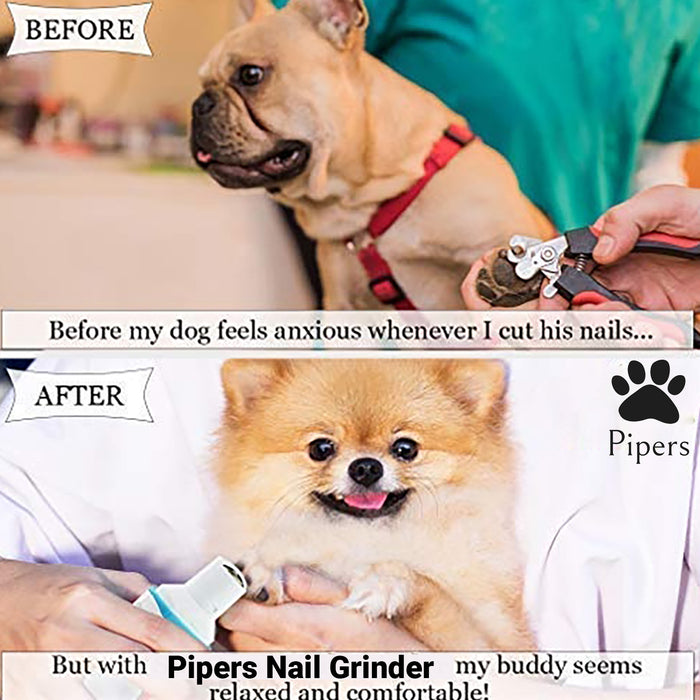 - SAVE TIME & MONEY ON EXPENSIVE VET VISITS - Any pet that has claws or nails need to have them trimmed or clipped once in awhile. Many pet owners go to the groomer or the vet instead of doing it themselves. The easy to use, very efficient Pipers Nail Grinder not only saves you money, but it also gives you more bonding time with your furry friend.