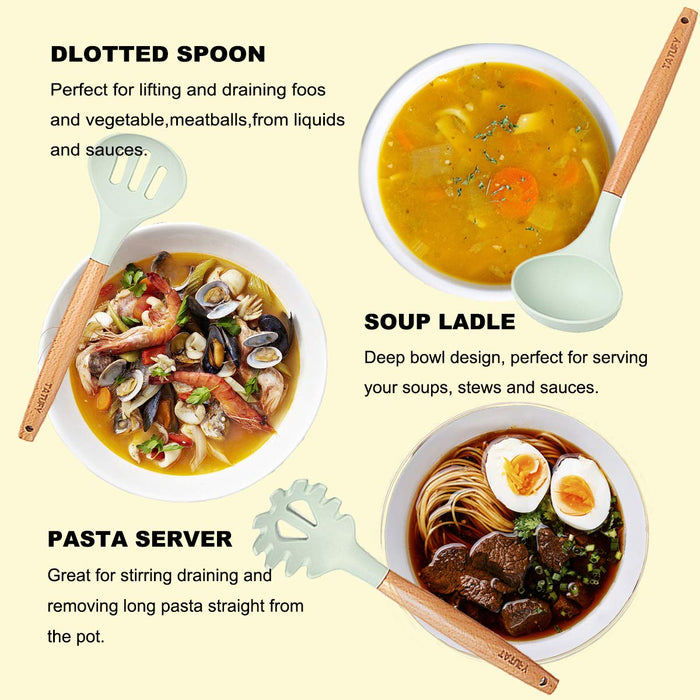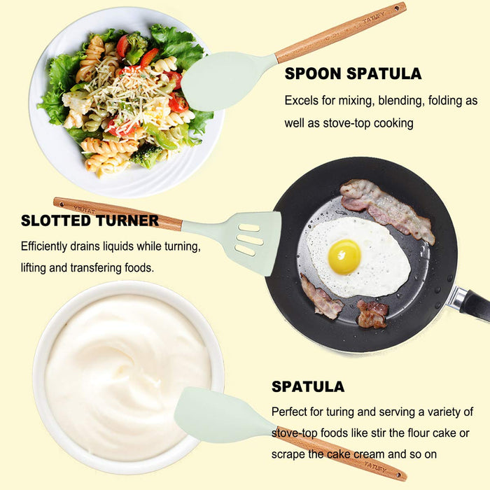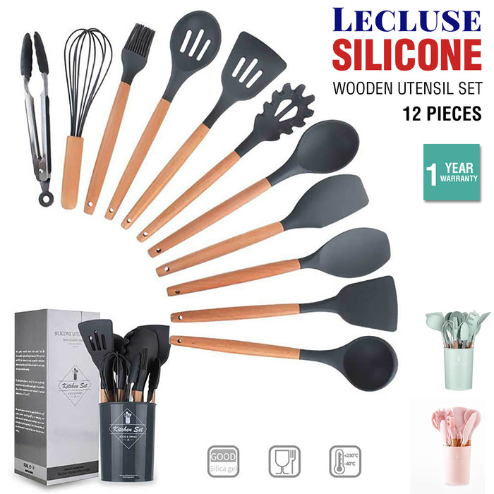 Set of 12 Silicone Utensils Set Wooden Cooking Kitchen Baking Cookware BPA Free