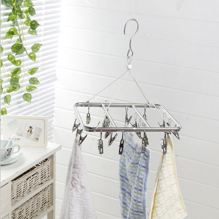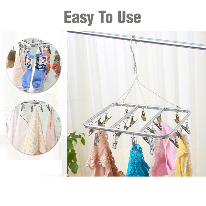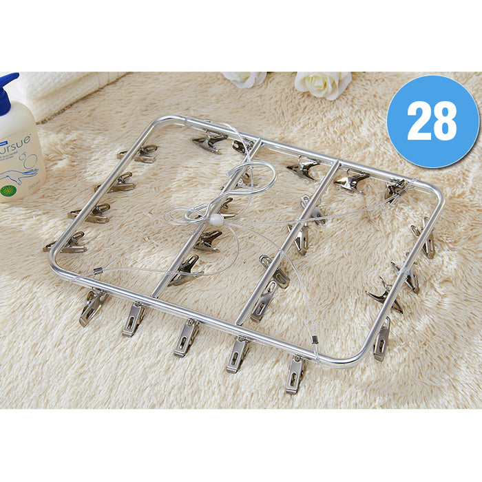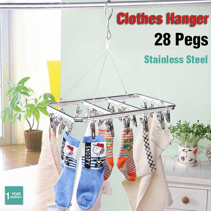 Stainless Steel Clothes Hanger Airer Dryer 28 Pegs Clips Rack Sock Underwear