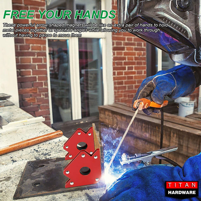 - Free Your Hands - Rather than having to use magnetic welding clamps that need to be readjusted and moved while welding, these powerful arrow-shaped magnets will be like an extra pair of hands to hold metal pieces together at specified angles while allowing you to work through without having to pause to move them! When it comes to welding fabrication, a couple of these heavy-duty arrow angle magnets are just what you need, which free up your hands for improving work safety and making work easier!