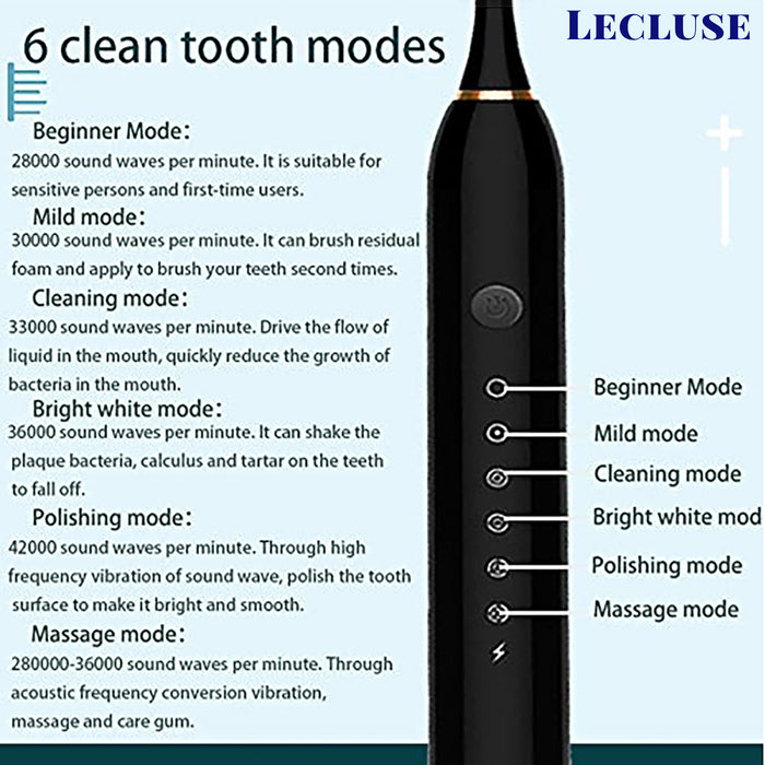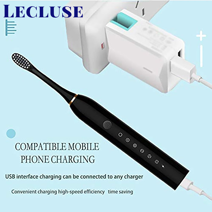 Lecluse Sonic Electric Toothbrush USB Rechargeable Ultra Whitening Adults Kids