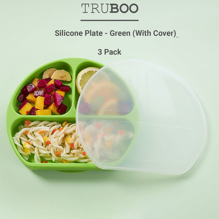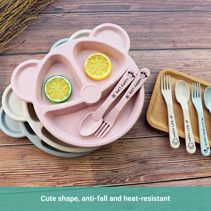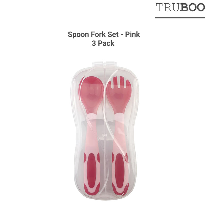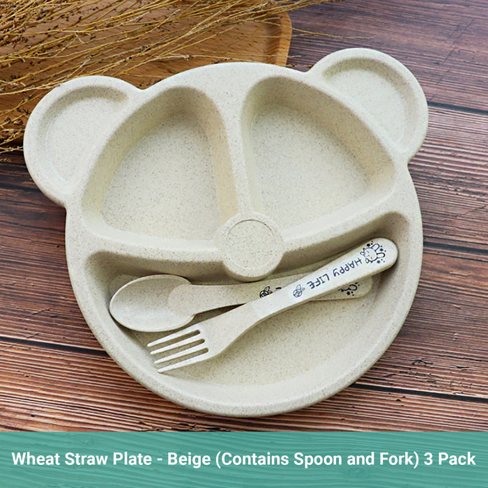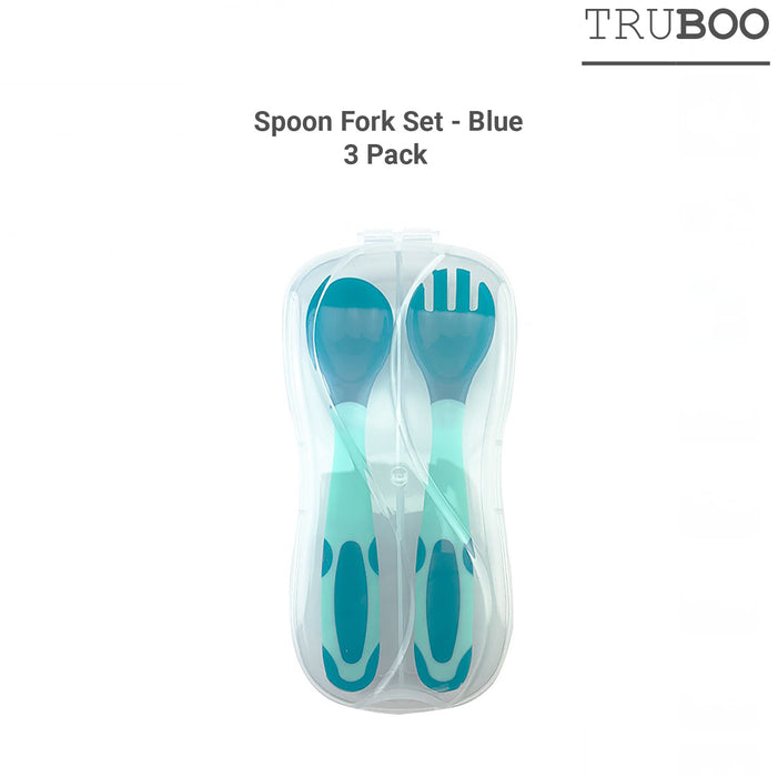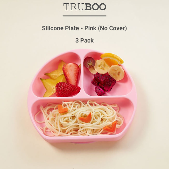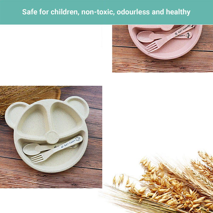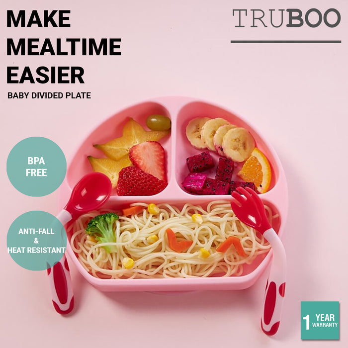 Truboo 3x Baby Divided Plate Toddler Feeding Tableware Fork Spoon Unbreakable