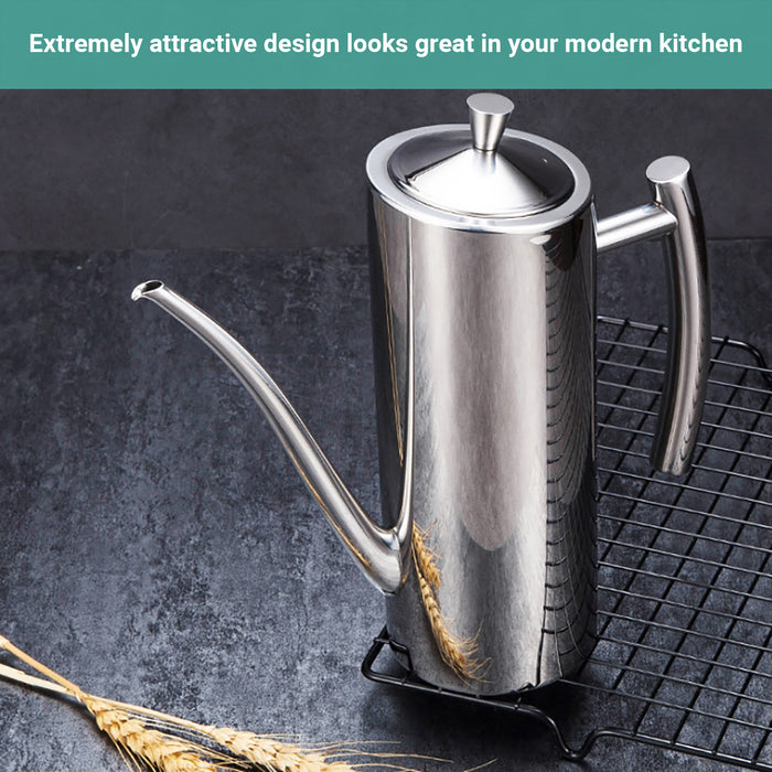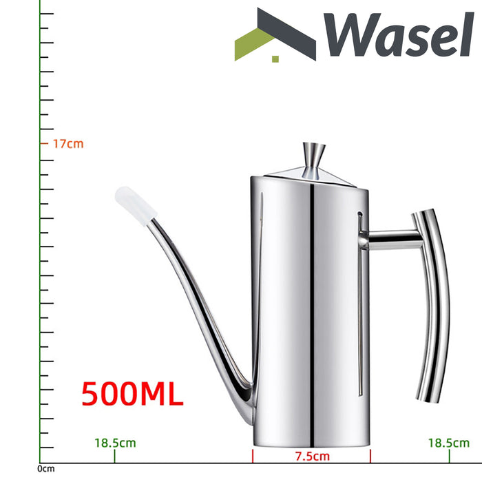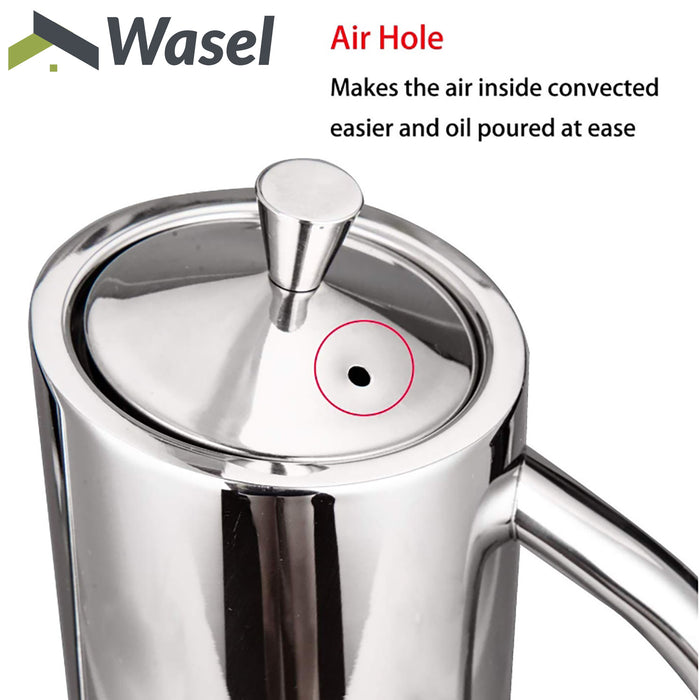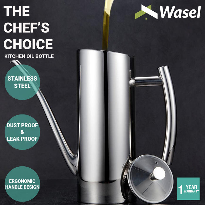 - Stainless Steel & Wear-Resistant - Made of food-grade stainless steel, durable, corrosion-resistant, wear-resistant, can be used at ease.Featuring a high-grade stainless steel design, the Wasel Kitchen Oil Bottle will look great on any kitchen countertop.