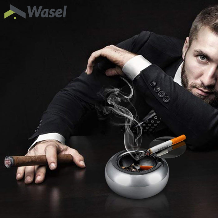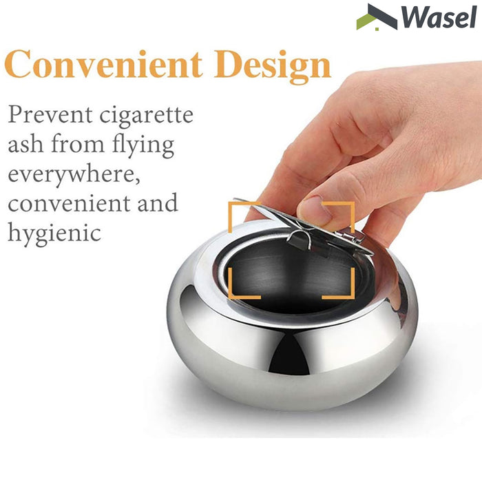 - WINDPROOF ASHTRAY - Simply open the Wasel Stainless Steel Ashtray, a cigarette holder welded to the inside of the lid that is very convenient which means you’re ready to smoke. Then just let the ashtray do the rest. What a nice gift for men, women and other smokers.
