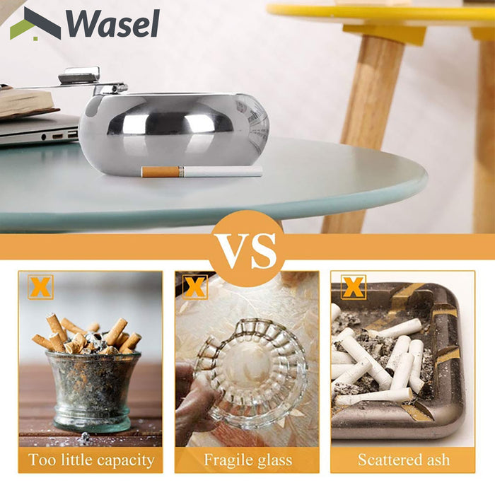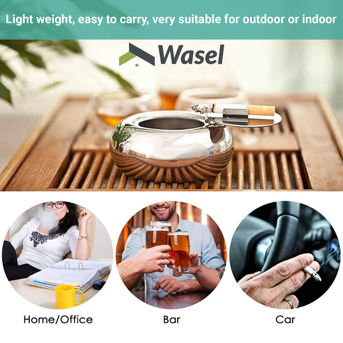 - BREAK-RESISTANT & BURN-RESISTANT - Our Wasel Stainless Steel Ashtray is made of stainless steel construction. Ash tray having high quality and sits nicely and presentably when placed. It even has a nice, little resting spot for your unfinished cig. What a nice decorative ashtray!