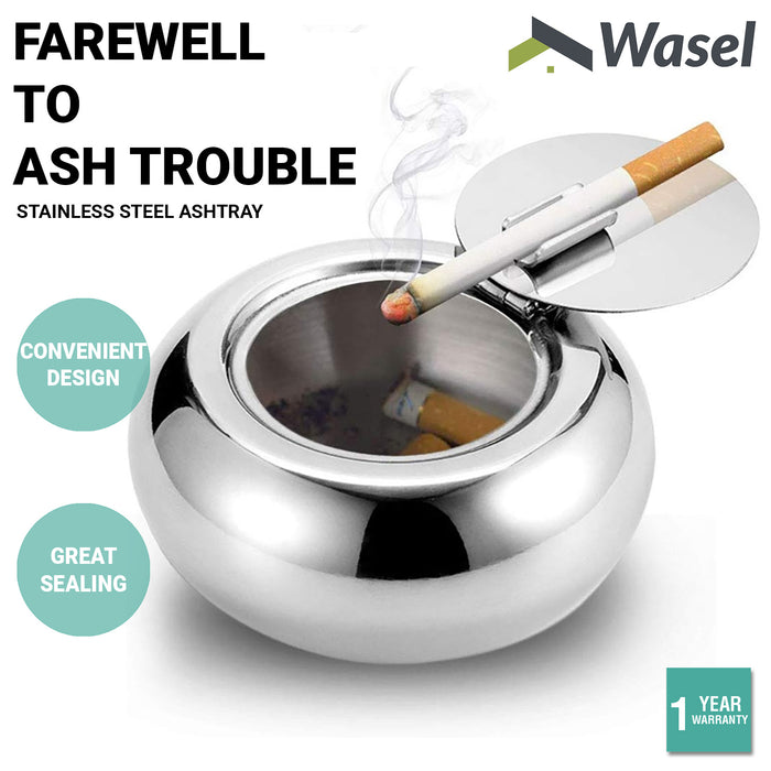 Wasel Stainless Steel Ashtray Cigarette Smoking Lidded Case Windproof Ash Holder