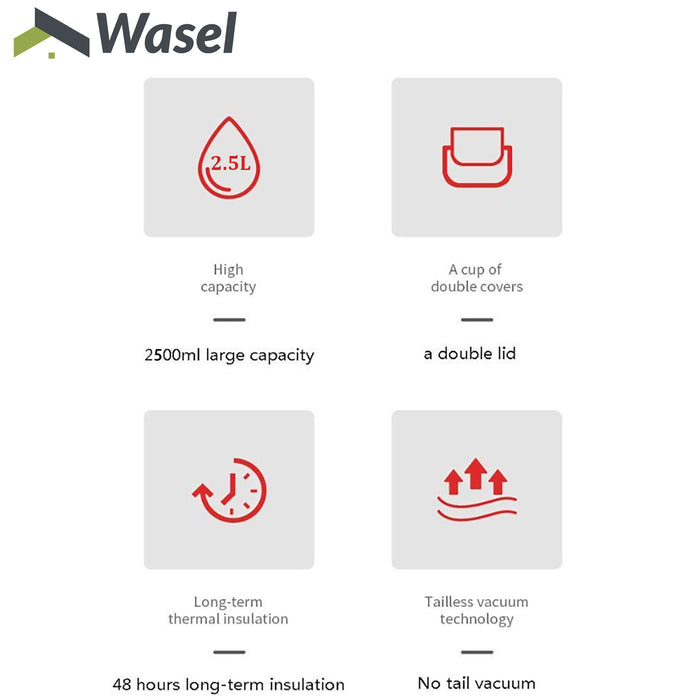 Wasel Stainless Steel Vacuum Cup Thermos Water Flask Large Capacity Travel 2.5L
