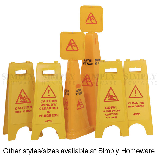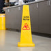 Prevent slips and falls with this highly visible 93cm tall cone-shaped wet floor sign. For optimum versatility, the top of this sign can accommodate barricade belts/chains, flashing lights, and sign holders, while the 27cm wide base enhances stability to keep it from being knocked over by your guests or staff. Its highly visible, safety yellow color and message printed on all sides of the cone makes the sign very effective.