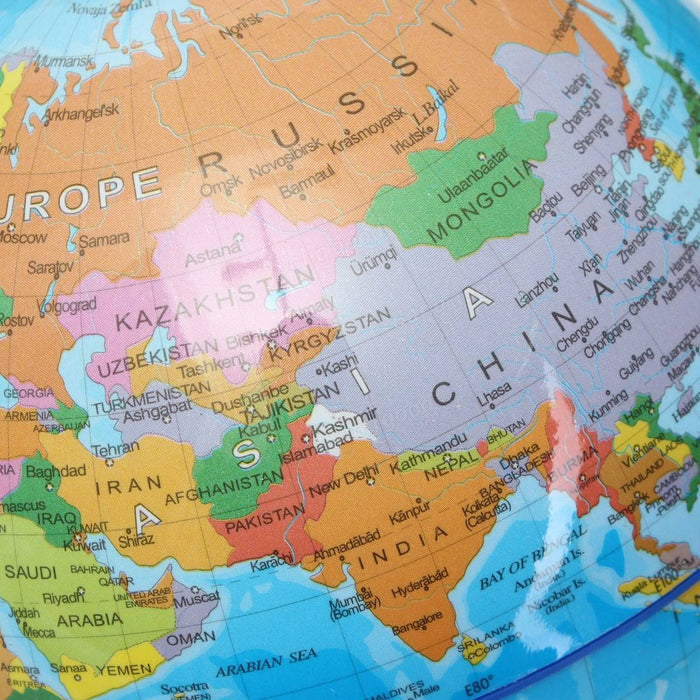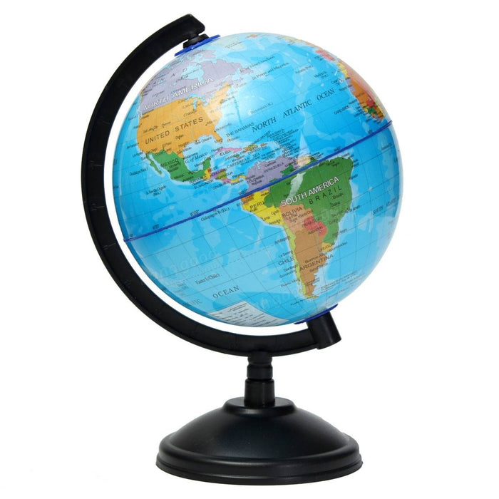 It features up-to-date cartography, vibrant blue oceans and colorful landmasses with political boundaries. The globe is held by a semi meridian mounted on a durable black colored plastic base. The globe is constructed from durable ABS Plastic Materials. Perfect for home, school, and office. Great for children & adults of all ages