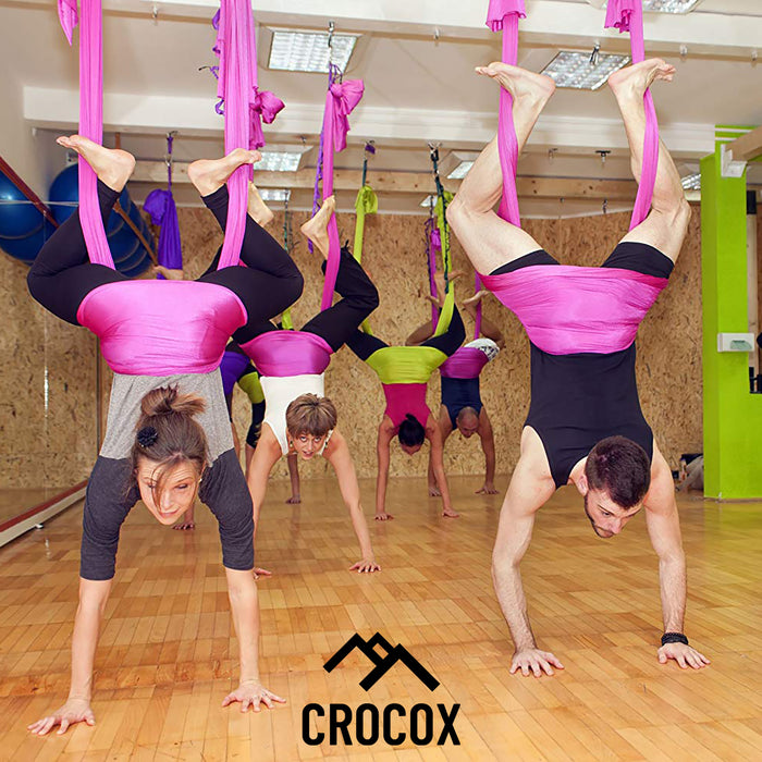 - ✔ A GIFT OF HEALTH & JOY - Crocox aerial yoga hammock is sure to invigorate you and your family's health. Enjoy aerial pilates, antigravity yoga, inversion therapy for spinal decompression or sensory swing therapy from the comfort of your home!