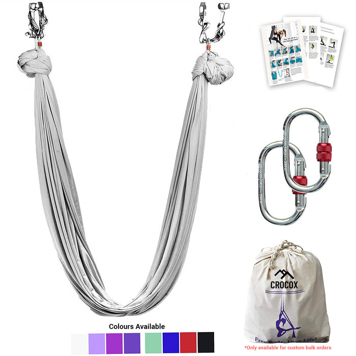 - ✔ PREMIUM VERSATILE AERIAL SILK - Made of Tricot fabric, the aerial silk is soft, durable & cool to touch with a beautiful subtle sheer. You can sit and cocoon comfortably in the hammock as it conforms to your body contour and provides generous width. You will feel a slight natural stretch but not too much. Hence it is great for both beginner, advanced aerial pilates & yoga practitioners